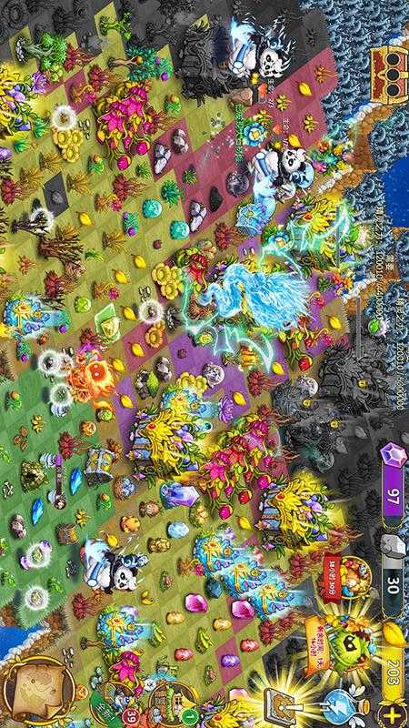 7、通过消除合成可以产生生命能量,驱散迷雾,清除荆棘,解锁新的乐园土地,收藏容纳更多的小精灵
