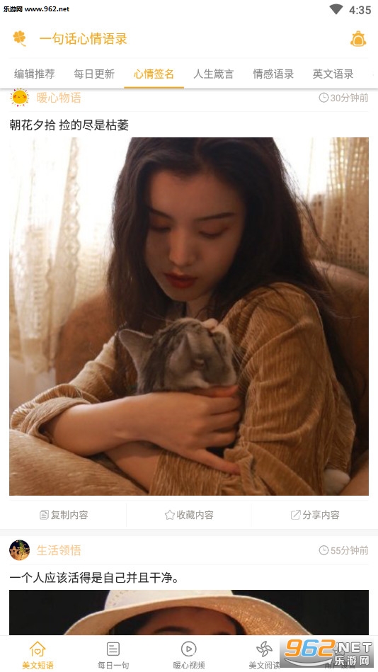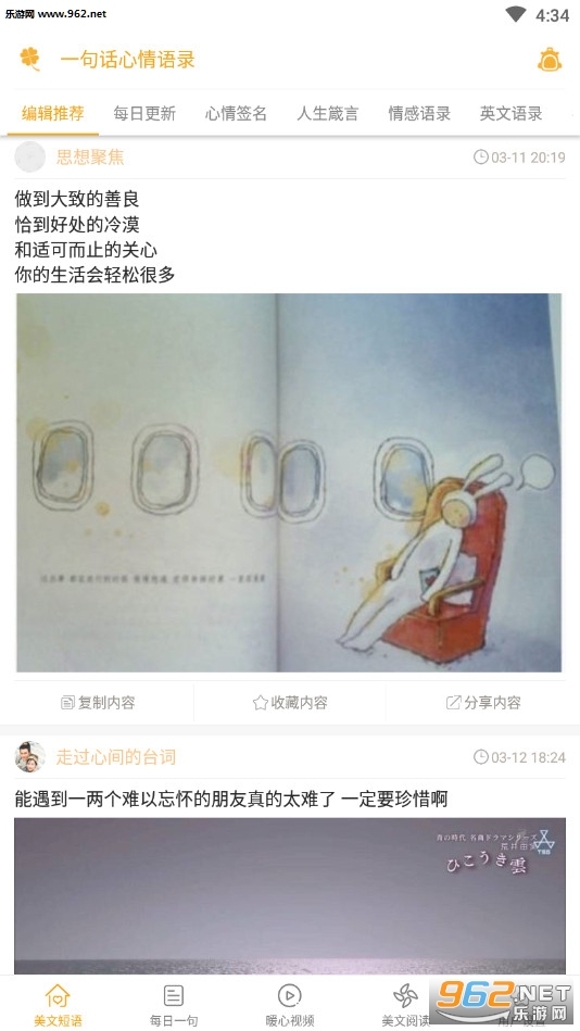 3、包括各类短心情、美文、暖心插图;