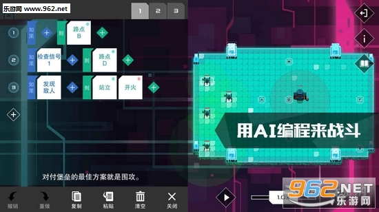 在游戏中,玩家要帮助虚拟世界中的机器人打败敌人。但是玩家不能直接控制这些机器人,而是要为它们编写AI程序,通过程序来控制它们。