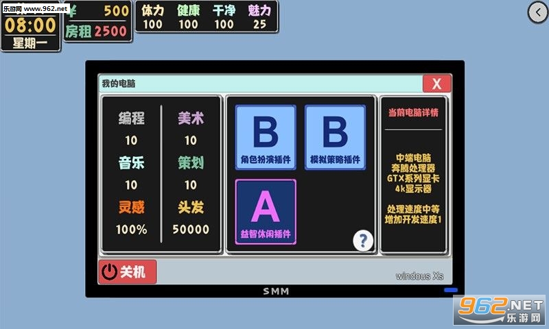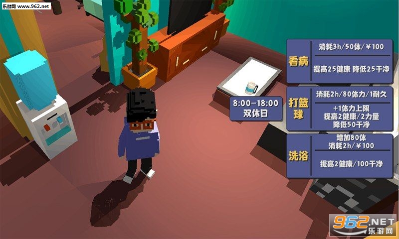 3、体力、健康、干净等多数据展示玩家的个人魅力,打篮球、看病、洗澡这些数值都会产生消耗、发生变化。
