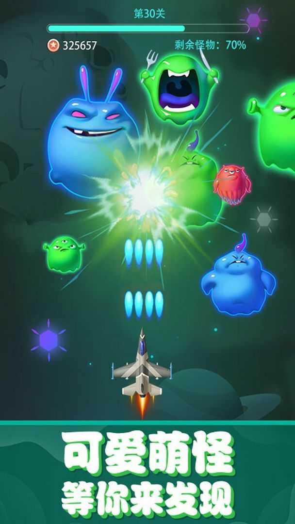 滑动控制飞机移动,射击清除来袭怪物,解锁升级强力武器,尽情享受火力爆发的乐趣!