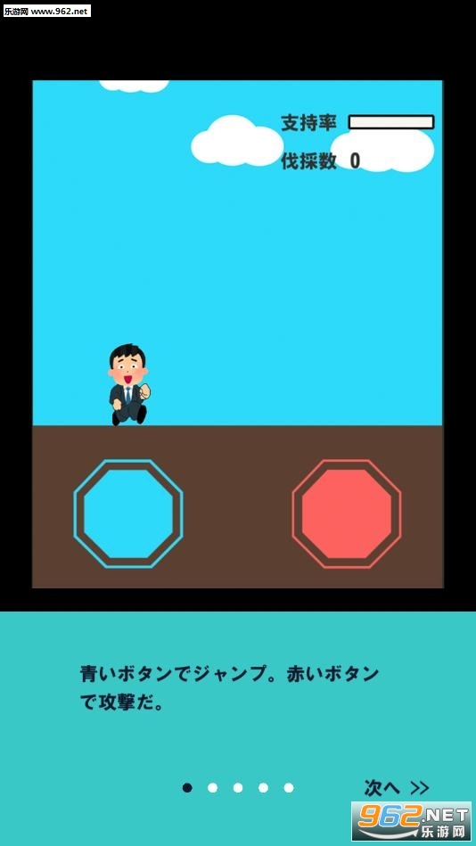 1、游戏只有两个按钮,用蓝色按钮跳转,用红色按钮攻击;