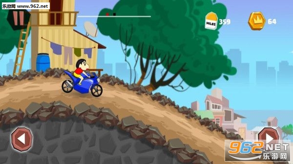 《蜡笔小新特技赛车游戏》是一款非常有趣的赛车竞速手游,游戏玩法非常简单,用前后两个按钮控制小新的摩托车,帮助小新到达终点,赛道的设计是为了让小新在骑车过程中可以展示许多特技表演,摩托车会旋转前后的翻转,唯一要注意的就是不要摔倒,摔倒就GG了。