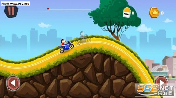 《蜡笔小新特技赛车游戏》是一款以蜡笔小新为主角的赛车休闲游戏,小新开着他的小汽车嘟嘟嘟的在公路上行驶着,你要帮助小新控制好小汽车哟,爬坡,下坡冲刺,转弯等等,这些操作都不难,使用你的通关奖励来解锁新车,与小新一起冒险吧。