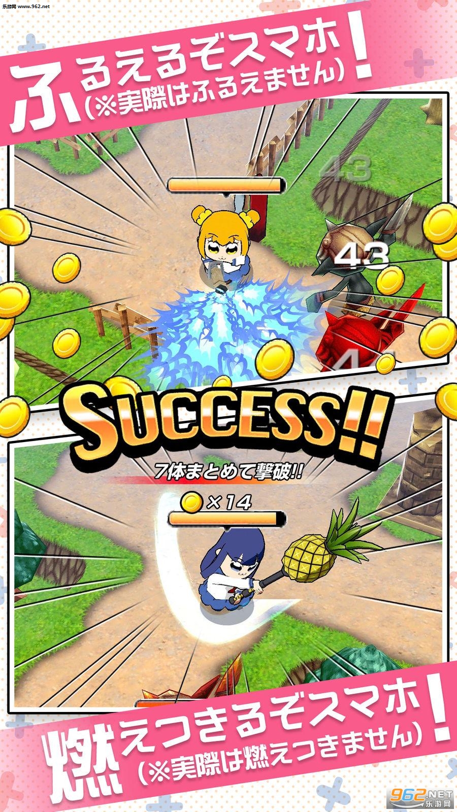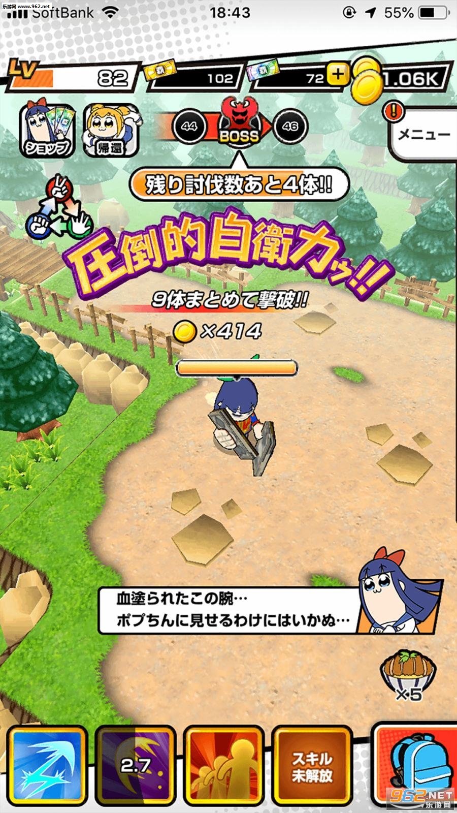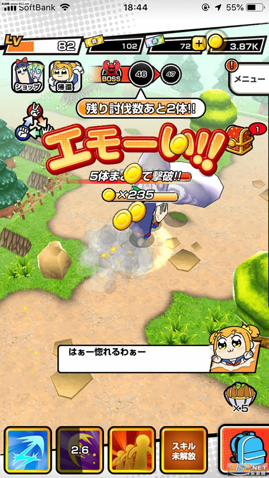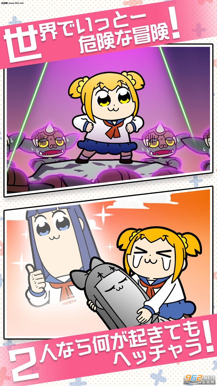 游戏中POP子与PIPI美会自动寻找敌人进行战斗,玩家可以让她们学习不同的强力技能,而且有不同的装备可以强化合成,玩法轻松简单但容易上瘾,快与POP子与PIPI美一起展开冒险吧!