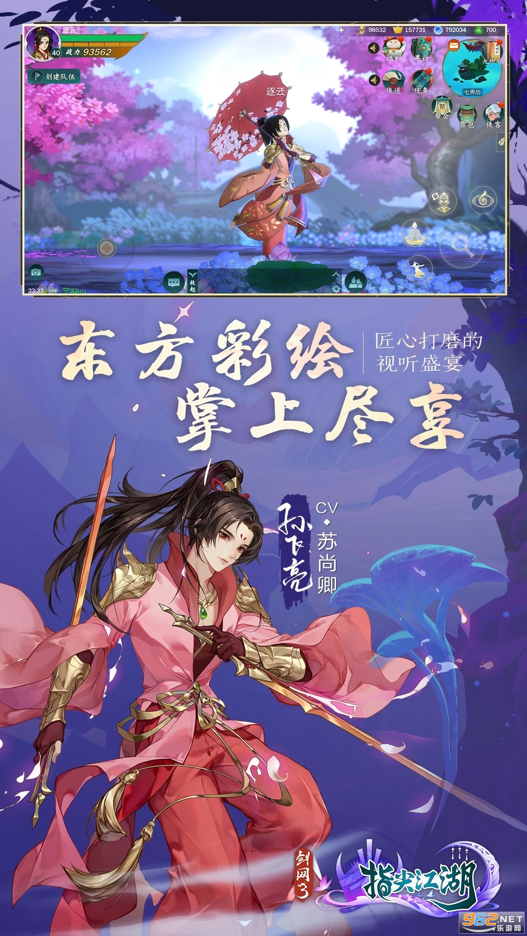 《剑网3:指尖江湖》以独具特色的剪纸画风,匠心打造3D纵深大世界场景。本次“一见倾心”测试,不仅新增少林、七秀两大地图群,所有场景亦再度扩展,为少侠再现端游级的自由探索体验。少侠与亲友结伴同游,从稻香村里到小镜湖畔,从纯阳宫山门到太极广场——立体化构建的美景错落有致,通过为移动端量身定制的智能运镜,带来更多别有洞天的游历体验。