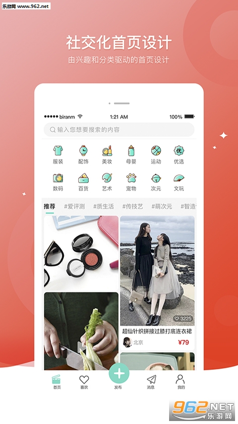 必然商城是全品类精品内容电商平台app,通过社交化、兴趣化驱动进行符合每个人购物习惯爱好的排列展示,目前平台售卖品类涉及服装、配饰、美妆、数码、居家、艺术等,通过有趣的内容社交购物将买家变为卖家的粉丝。