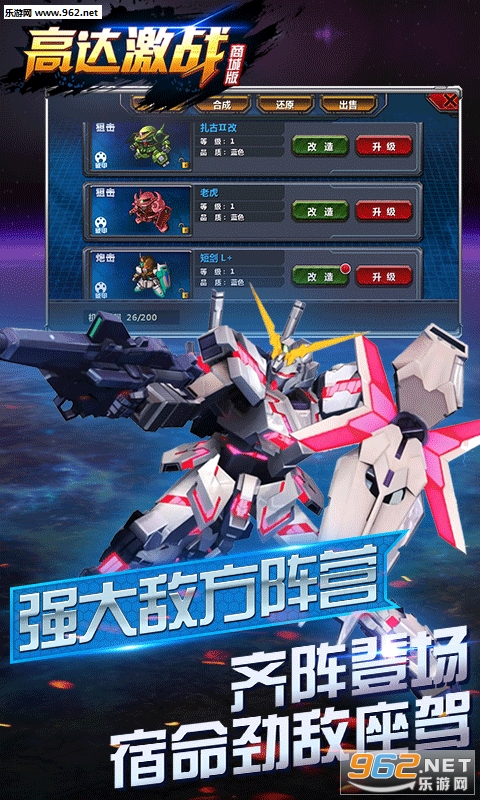 《高达激战-商城版》是一款经典的机甲题材策略战斗手游。游戏以机甲战争为背景,汇集了众多经典“一年战争”战役作为游戏线索,完美展现了宇宙战争时期机动战士在战场上的统治能力,以极致写实的画面将炮弹横飞、火光冲天的战场刻画的淋漓尽致,给你带来前所未有的战争体验。在这里玩家上线即可获取超级VIP特权,各种酷炫机甲在线获取,轻松收集组合养成你的机甲部队,快来开启你的史诗战场!