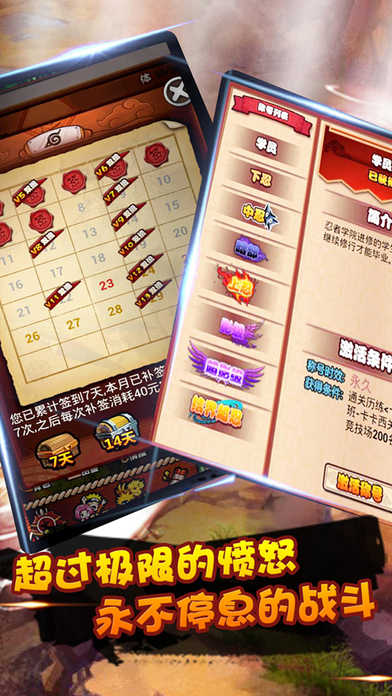 2.新颖的羁绊设定,精彩绝伦的忍术,带领玩家体验丰富多彩的火影世界;
