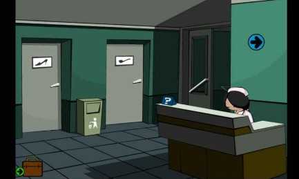 12、出门点右面箭头,到客厅去(就是那个两个把手,本应到是粉红色的门),进入到天井,会发现令人惊悚的一幕,一个死人(噢,长的好丑啊……)把他手中的工具箱拿到手,放大,点击打开。你所有的物品就可以拿回来了,赚了,还多一个工具箱呢!
