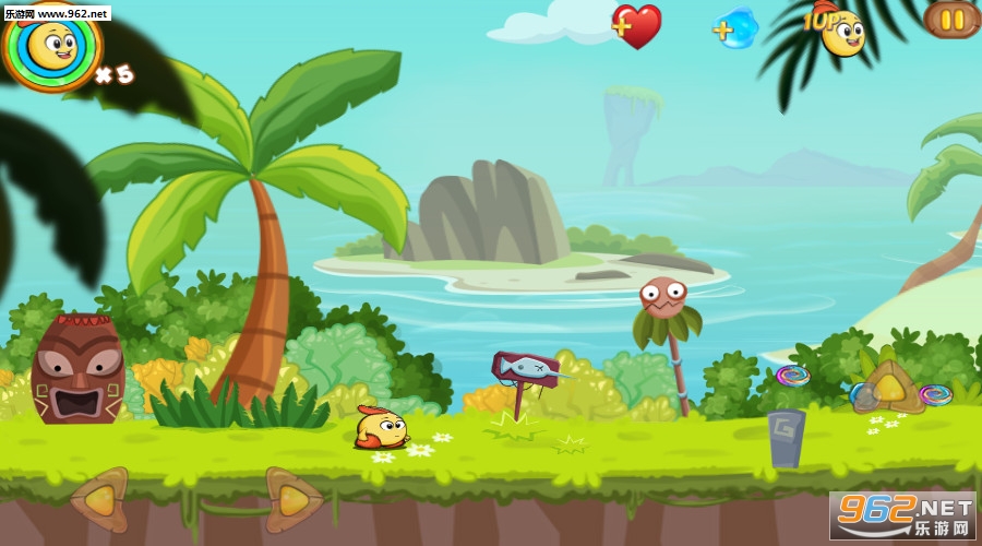 游戏采用了精致唯美的卡通美工画风,游戏中你将操作可爱的小黄鸡开启冒险旅程,游戏中你会碰到各种会说话会动的植物,如长相像西部牛仔的仙人掌,糊了一嘴巧克力的粉猪…游戏中充满了童话与活力,游戏有着草原、糖果屋、海盗船等游戏场景,非常的有趣,你还可以发射羽毛攻击敌人哦!