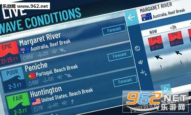 真正的冲浪与21个世界上最大的冲浪打破驱动真正的轴的真实世界的物理模拟引擎,并由现场的Surfline天气预报。