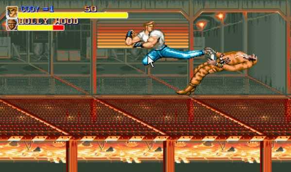 游戏发生在一个名叫Metro的混乱都市,由于黑帮的出没(尤其是一个名叫Mad Gear的黑社会组织),这里成了地球上最乱的地方,就连Metro市长Haggar(市长居然是一位满身横肉的大叔)的女儿杰西卡也被绑架,于是在杰西卡男友Cody(一位普通人)和Guy(Cody的好友,受过专门的忍术训练)的加入后,Haggar等三位街头战士决心铲除当地恶势力。《快打旋风》是由CAPCOM公司开发的格斗类型游戏,于1989年发售,最早是作为《街头霸王》的续作而开发的,原名《街头霸王89》。