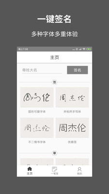 一笔签名设计免费版app是一款免费在线设计一笔签名的app,各种艺术字及明星字体都有,只需要将自己的名字输入进去就能得到各种字体的签名,并且可以选择喜欢的字体加以练习,让自己有一个独特酷炫的签名