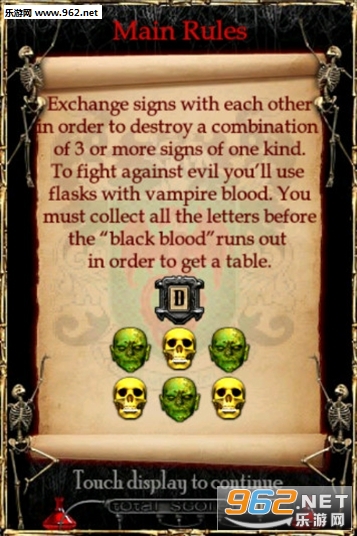 游戏玩法非常简单,你需要在屏幕上移动五彩斑斓的骷髅头和南瓜头等,只要有3个或3个以上颜色相同的骷髅方或者南瓜头块相连即可被消除。