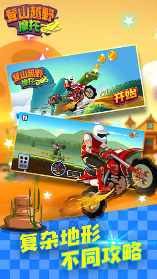 这是一款拥有卡通画风的赛车竞速游戏,提供多种摩托车类型供你解锁体验。海量关卡等你挑战,复杂的地形考验你的驾驶技巧,带来绝佳的游戏体验,快来下载尝试吧!