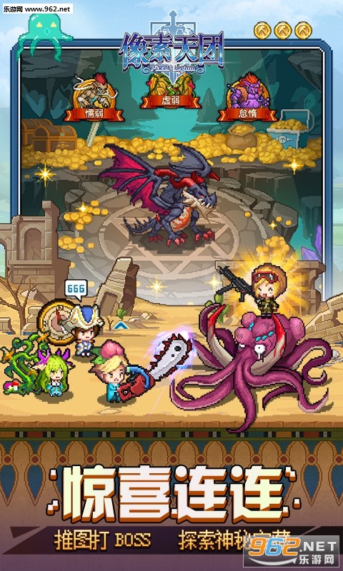 《像素天团》是一款带有剧情的像素风格的手机游戏,游戏中有高达100名英雄供你选择搭配来挑战BOSS,全新的技能消块即时战斗模式让游戏趣味性更加突出。