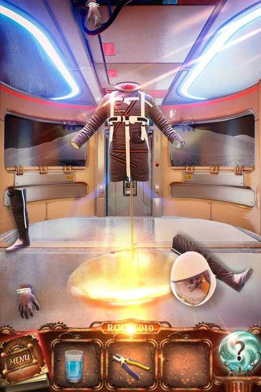 3.第三关我们在沙发上拿到一根绳子,然后我们把绳子放到左边台灯处,场景亮起来之后我们看到左下角有个红色的按钮,按下之后,进入第四关。