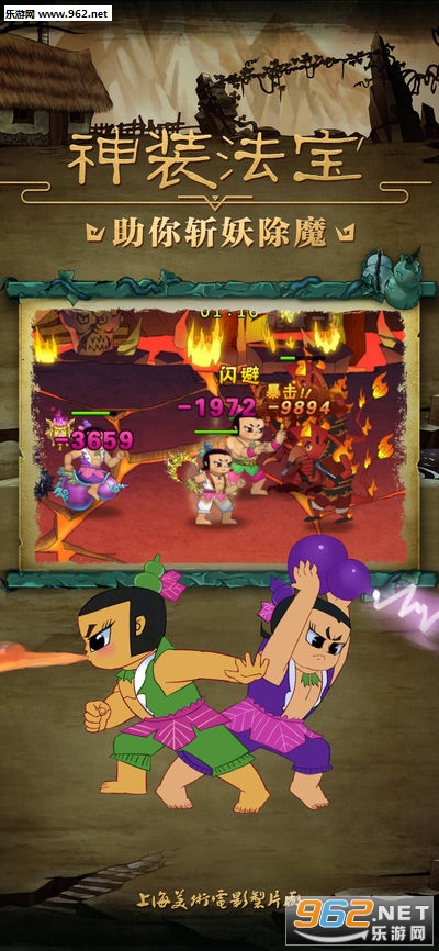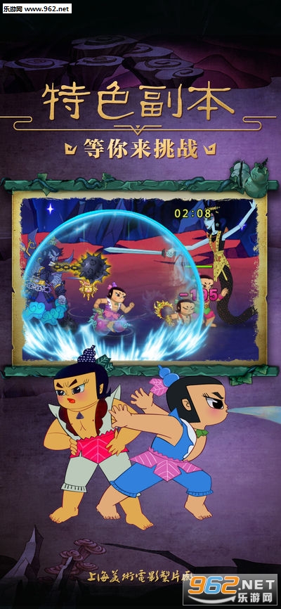 由上海美术电影制片厂正版授权,以86年《葫芦兄弟》剪纸动画片为背景的手游大作。深度还原动漫情节,开创横版战斗手游全新玩法,挥别传统AI组队、电脑控制,策略搭配,默契组合,与游戏好友实时互动,共闯妖巢!当年的你,只能看着电视屏幕暗自捉急,如今,你却可以带着团结勇敢的葫芦娃们,拼荆斩棘,怒破妖洞大门!此番能否救出热心善良的爷爷与凄凉悲苦的小蝴蝶,还看今朝掌中葫芦娃!