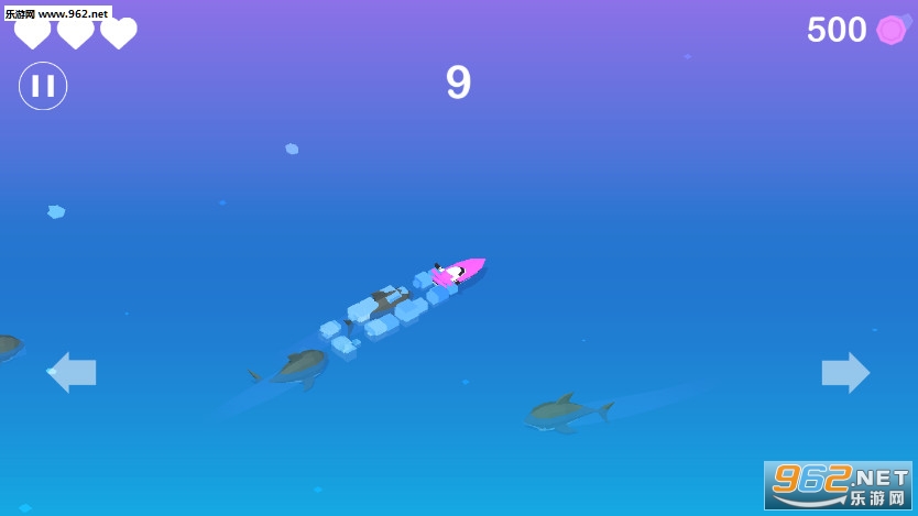《冲浪者VS鲨鱼游戏》(Surfer VS Shark)是一款画面清新的躲避鲨鱼攻击的敏捷类休闲手游,游戏中玩家将控制一个冲浪者驾驶游艇在海上行驶,周围会出现大量的鲨鱼来追赶你,点击屏幕可以控制游艇顺时针和逆时针漂移,如果爱心消耗完了游戏就结束了。