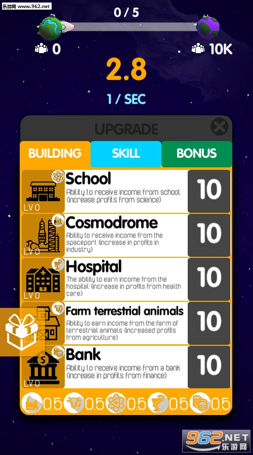 一款卡通风格的太空探索游戏,游戏中有着我们许多已知的星球,也有架空的,我们需要发展地球然后慢慢的像其他星球殖民,非常有意思。