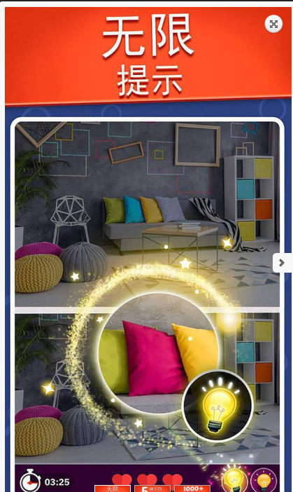 1、每一个关卡都是两个相同的图片,而里面不相同的地方有几个就看关卡给的任务了。
