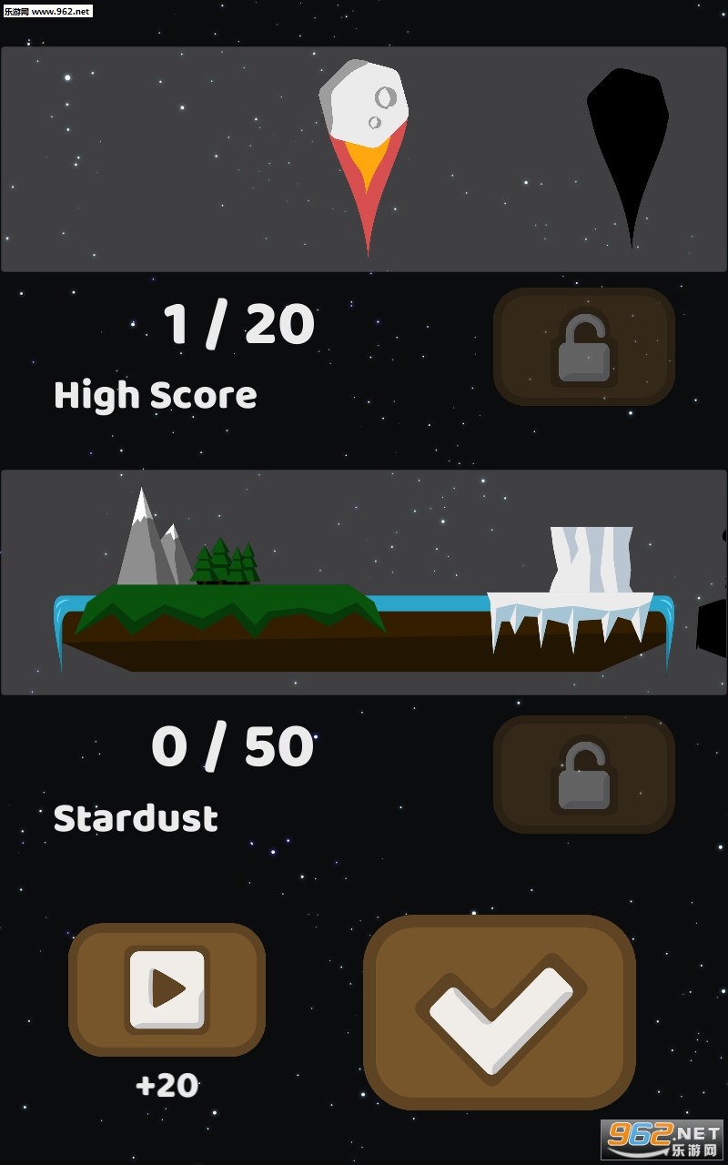 总体来说是一款非常不错的敏捷休闲类的游戏,画风采用了简洁的剪影的风格,操作的玩法上也很简单,玩家只需要在太空中控制你的陆地的平台旋转来躲避天空中的石头,不要让它砸到你即可,当然玩家们可以解锁更多的陆地的平台还有陨石哦,喜欢的亲们赶紧下载吧。