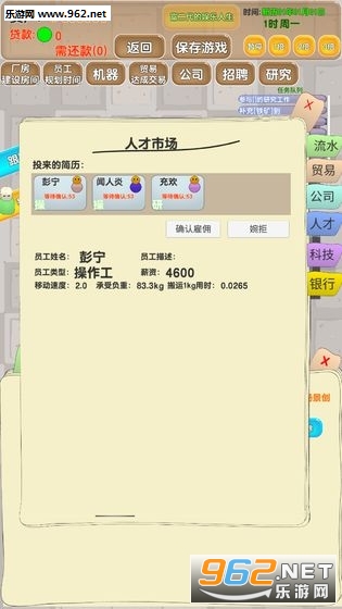 现在你是一个老板 管着一个工厂的生存,在不同的市场环境下生存,谋求更大的财富,为此你需要建设房间、引进设备、招募人员、管理作息、钻研科研、开展贸易。当然在你穷困潦倒的时候银行会帮上你的大忙,但一定不要拖欠银行贷款,否则法院会让你前功尽弃!努力生存吧~