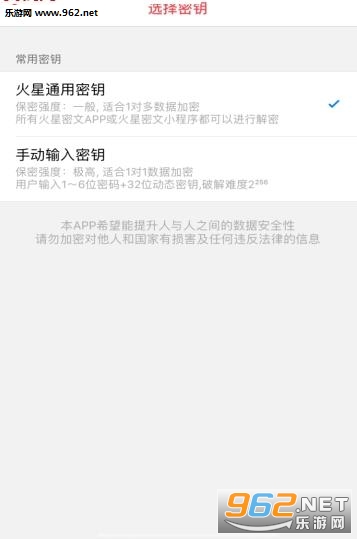火星密文提供两类密钥加密: