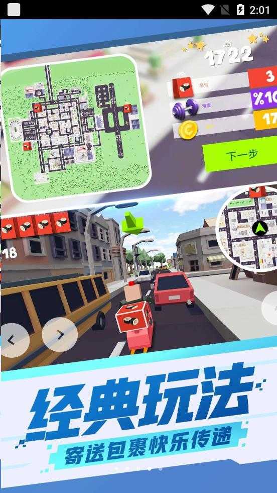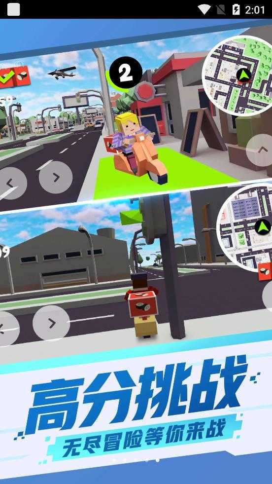 2.玩家将会在游戏中成为一名快递员,你的任务就是在城市中骑着摩托车不断运送各种快递。