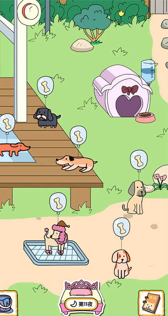 硬要提点建议就是感觉庭院里的狗狗好小,显得空空的,还有就是庭院里的道具或者狗狗能互动就更好了