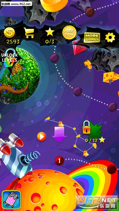游戏操作十分简单,玩家只需上下左右控制一只萌萌哒的方块喵,在太空中拾取金币和躲避障碍物即可。