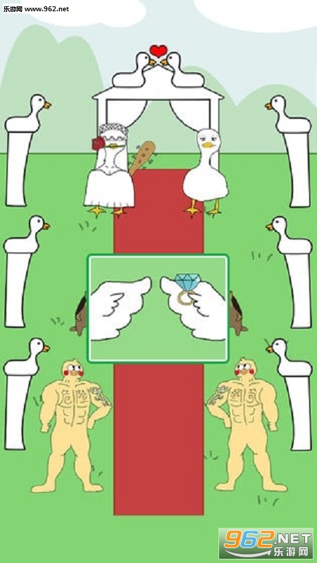 老公溜了鸭游戏是一款以魔性解密为题材的休闲了手机游戏,老公溜了鸭游戏画面十分的简约,游戏拥有很多个关卡,玩家在游戏中控制一只公鸭,利用脑力和关卡中的道具,来逃离婚礼,非常有趣。