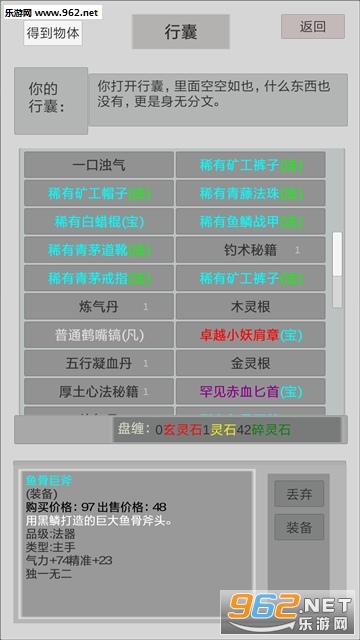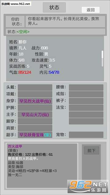 玩家需要通过不同的方式,获取资源和装备,修炼功法提高境界,最终提高人物的战力!