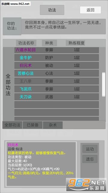 功法有特殊效果,配合使用可以打出不同的策略。