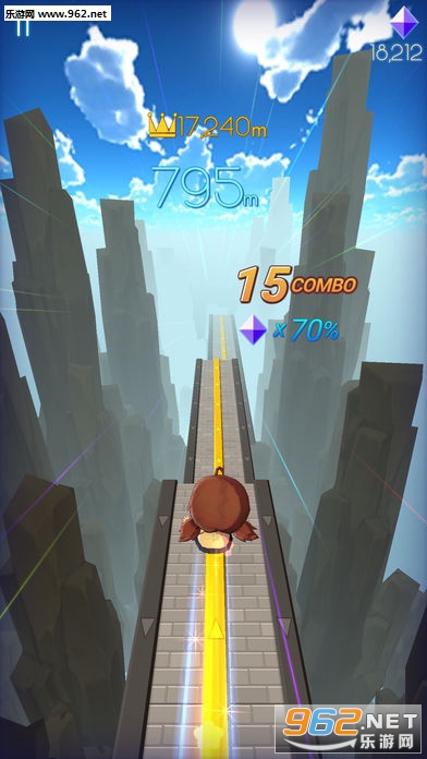 SkyGirl(天空女孩飞翔的跑步者)这是一款空中女孩飞跑游戏,您的女孩可以以令人振奋的速度奔跑,跳跃并在天空中飞翔。当您降落在每个浮动平台的金轨上时,您的头像会跑得更快。连续踩金轨将在每轮结束时奖励你的奖金宝石。