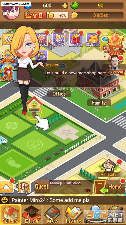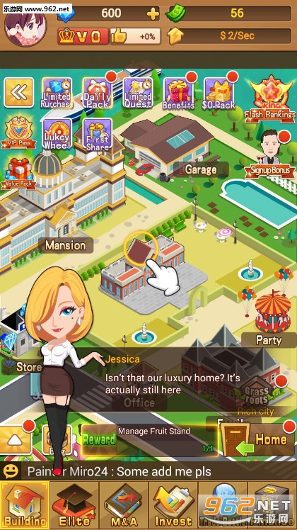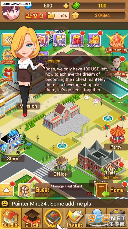 《FilthyRich游戏》是一款卡通风格的模拟经营游戏,你要从一无所有的草根开始奋斗,一步步的为你成为超级首富的梦想打基础,当你的资金积累到一定程度的时候,你就可以去邀请超级巨星,社会名流等等来为你的集团宣传,让你不断的获得金钱。