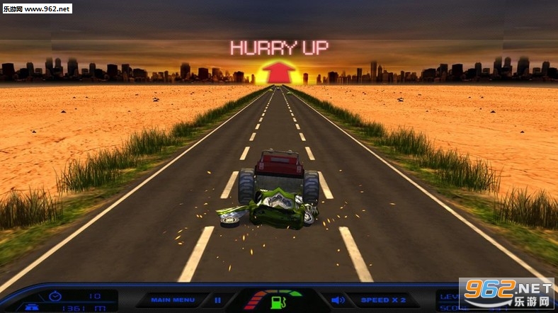 玩家可以通过重力感应调整卡车的行驶方向,也可以通过卡车跳跃控制键碾碎阻挡在前面的其他车辆。过程中名玩家的卡车可获得在路上的增益效果的加持,帮助玩家延长游戏时间。
