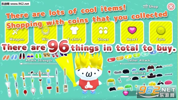 在商店购买『武器』『假发』『T恤』『鞋子』『心』