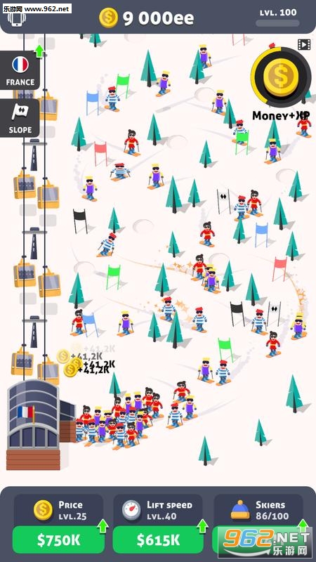 不同国家的数十个滑雪场,吸引更多的游客来你的滑雪场游玩,通过斜面坡度、场地设施、地价等内容,提升赚钱速度。