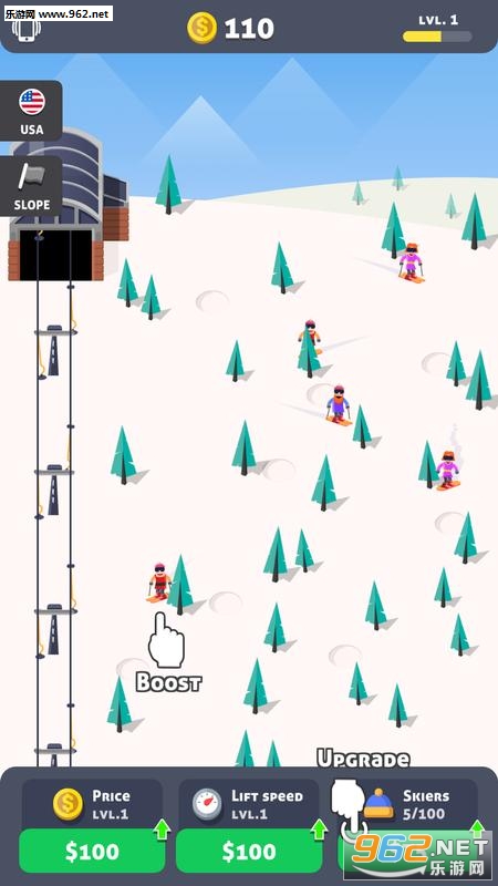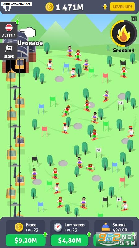 全新玩法的一款休闲类游戏,和以往的滑雪类游戏 不同的是,此游戏玩家并不是要在游戏中滑雪,而是通过点击的形式让你的滑雪场道具和设施更加齐全,滑雪场更加繁荣!