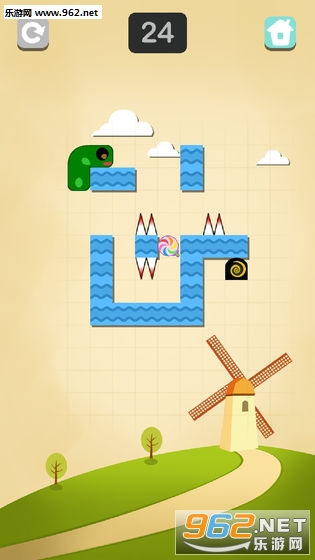 3、操作你的小虫在平面中移动,可以使用关卡中的各种各样的道具和砖块去帮助你吃到糖果。