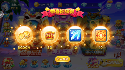 3、【金币无忧】登录即送大量金币资源,在线时长还可持续领取补给奖励,零氪也能轻松畅游各大核心渔场,无需重投入即可享受完整游戏内容。