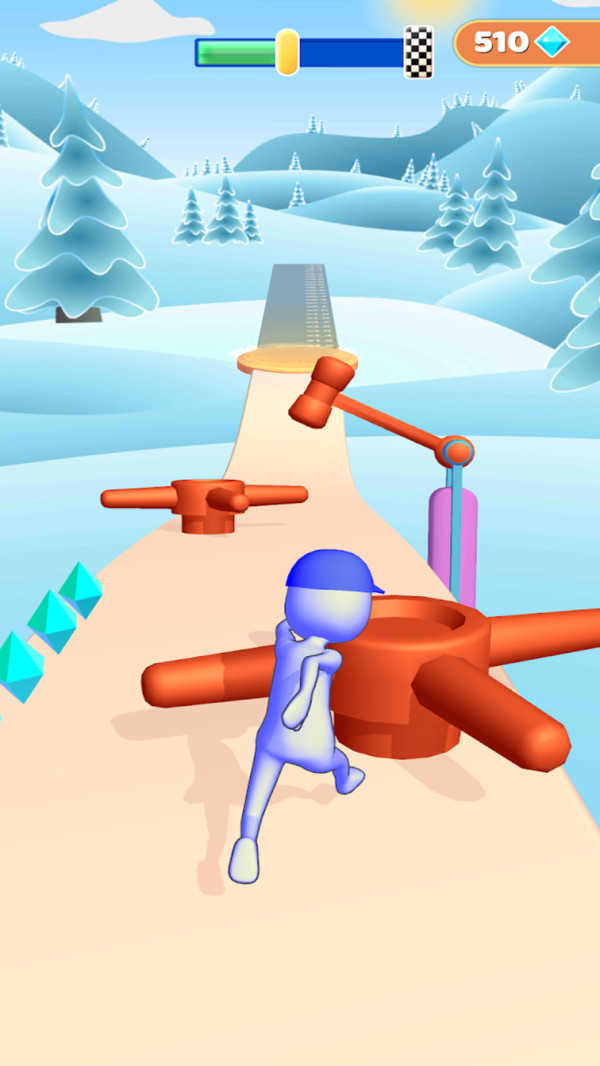 2、闯关冲刺提升反应速度,敏捷躲避转动的机关,收集更多的钻石。