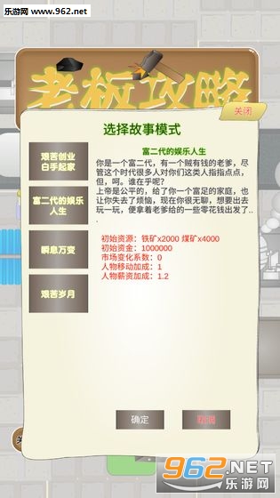 《老板攻略游戏安卓版》是一款画面简约的模拟经营休闲手游,游戏有着艰苦创业白手起家、富二代的娱乐人生、瞬息万变和艰苦岁月四个故事模式可以选择,每种模式下的初始资源和人物属性是不同的,玩家可以建造工厂,招募员工,发展自己的事业。