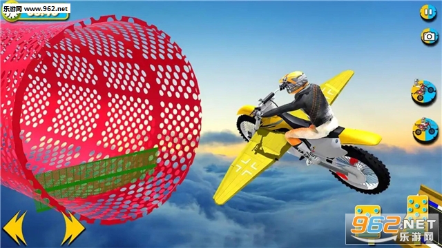 游戏画面精致,操作简单。玩家需要驾驶飞行摩托,征服极具挑战的天空赛道!