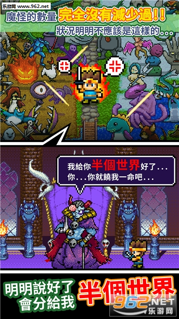 玩家需要化身勇者,召集所有的伙伴,去攻占魔王城,完成与魔王的交易!