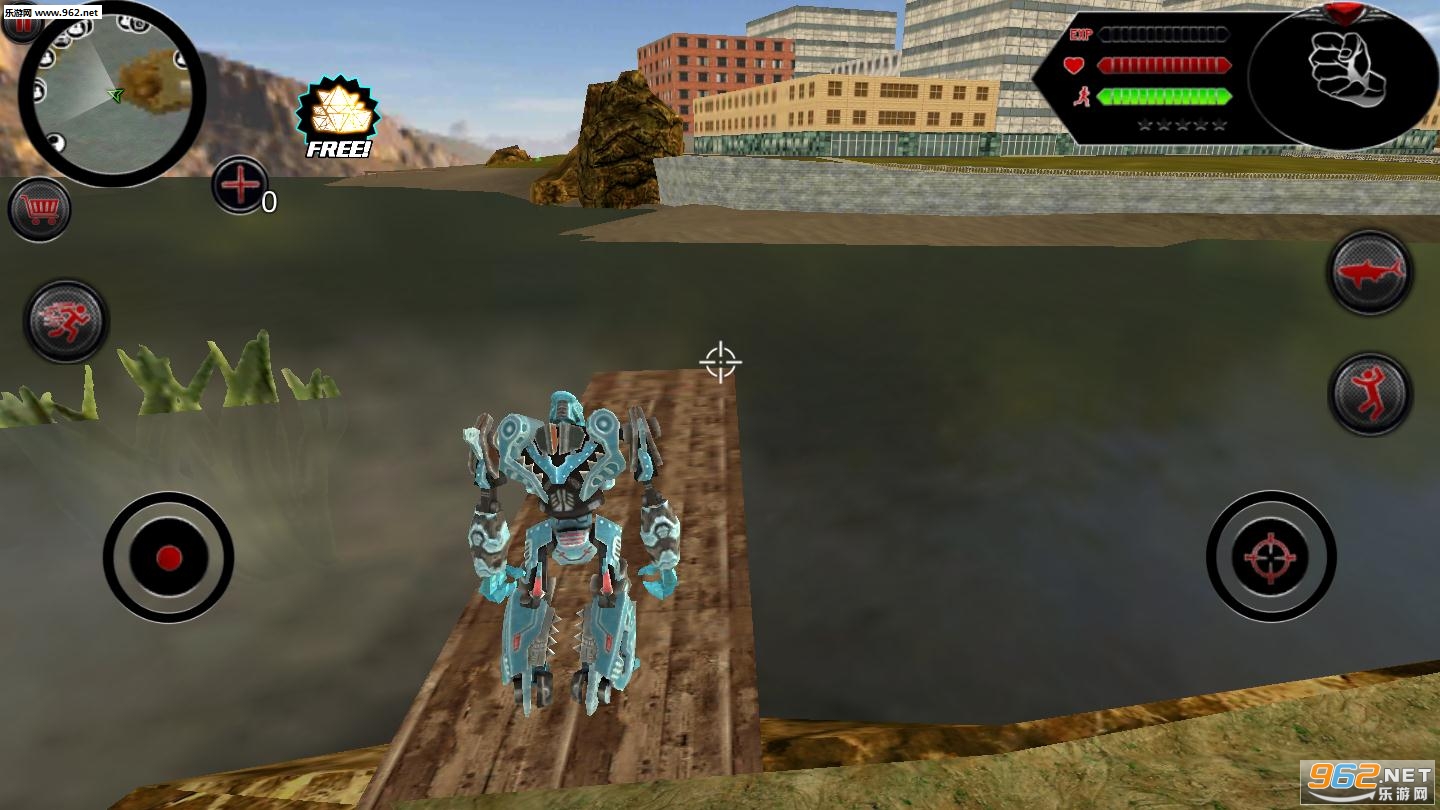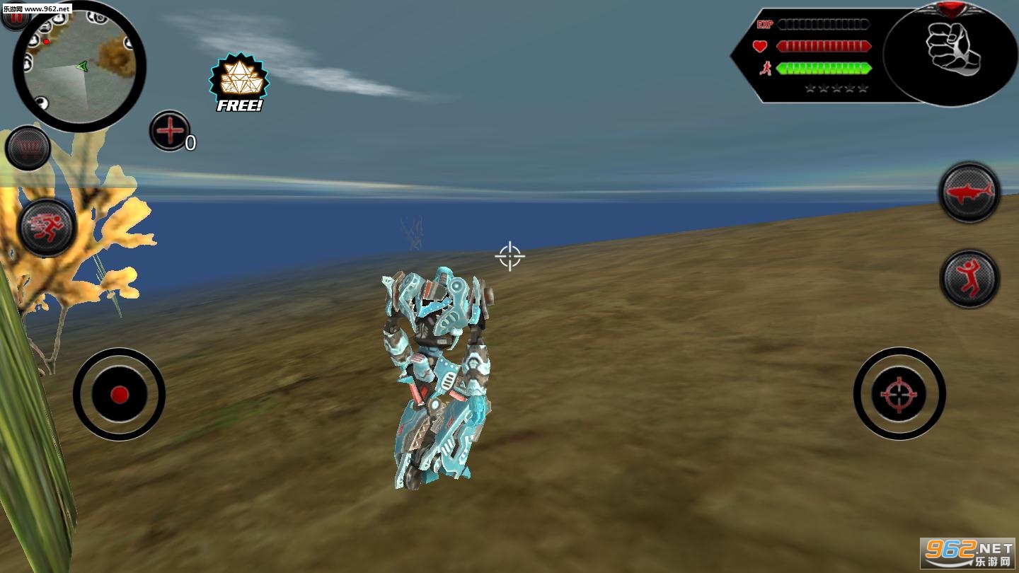 1、在这里来成为一个超强大的鲨鱼机器人,你可以在海中和陆地上来展现出你强大的战斗技能,
