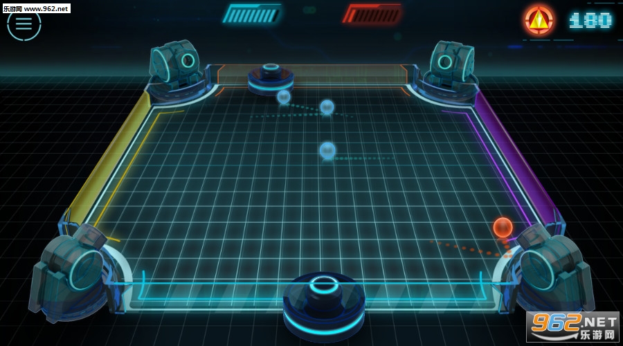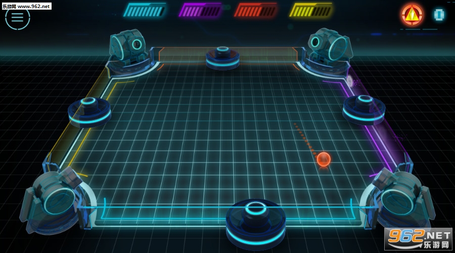 《3D炫光冰球》(Glow Hockey 3D)是一款动感的3d弹球类游戏,不同色彩的小球四处碰撞,拦住四面八方飞来的小球不要让小球撞到你的门。并将冰球重重的打进别人的球门之中!