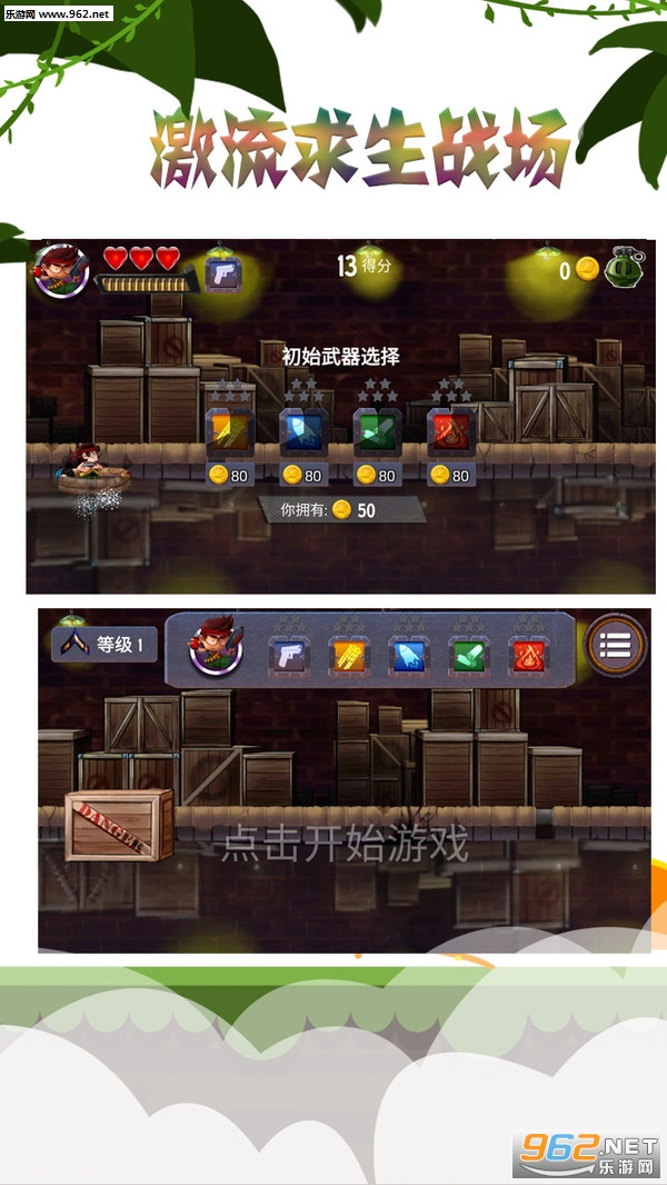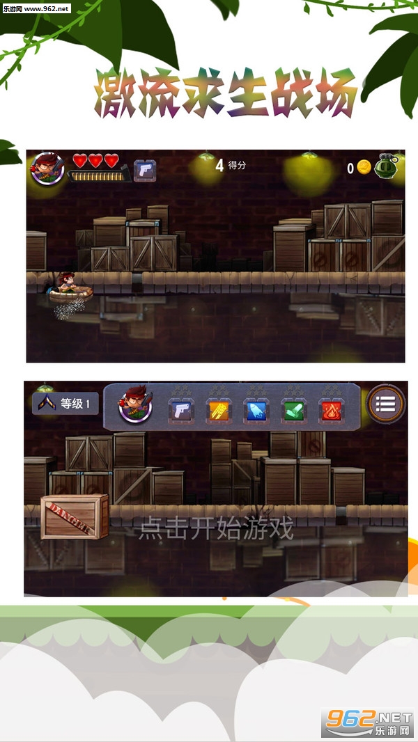 《激流求生战场安卓版》这是一款卡通风格的动作射击手游。玩家需要控制人物移动,注意避开各种障碍和攻击,同时尽可能消灭更多的敌人。游戏上手容易,关卡丰富,感兴趣的玩家可以下载体验!